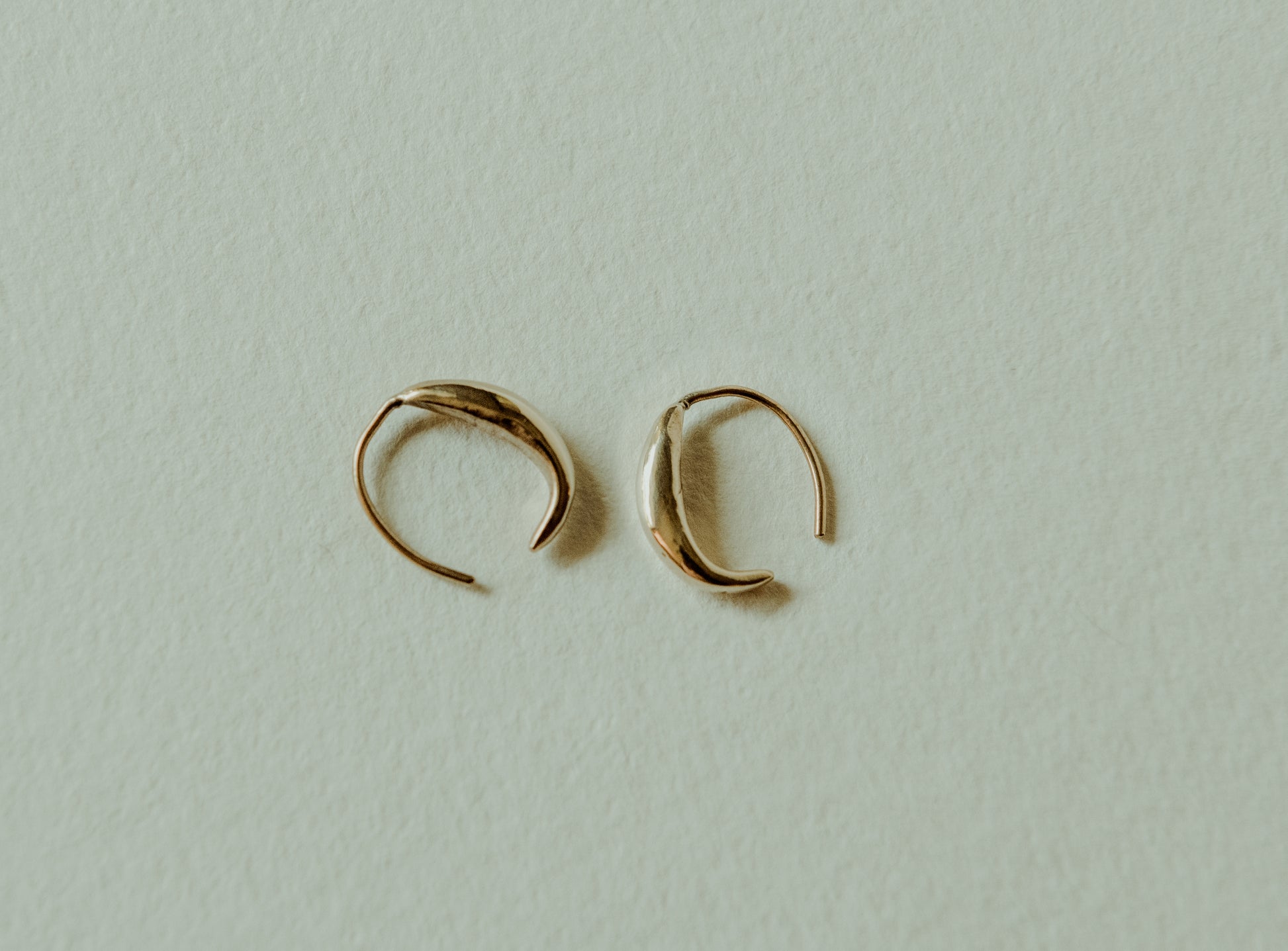 First carved from wax then cast in recycled bronze with 14k gold filled ear wires. The Aila Hoops are lightweight, minimalist, organic everyday favorites.