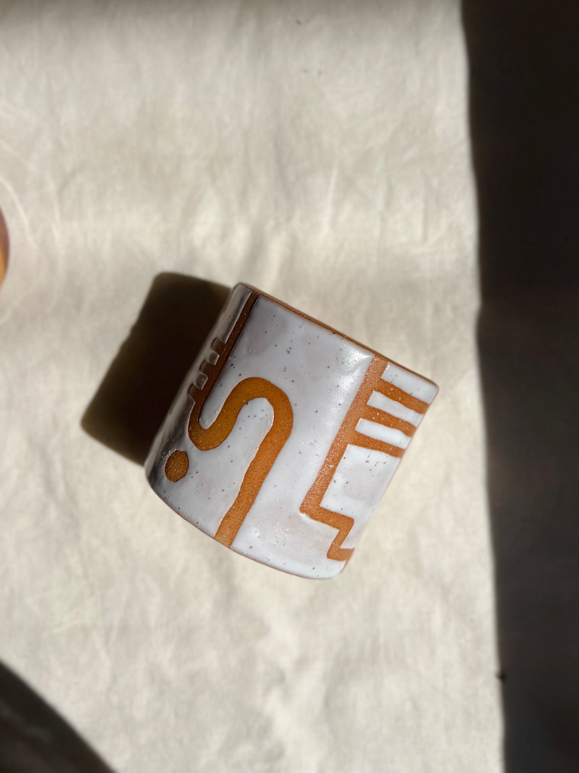 These small planters are perfect for your table top work space or little windowsill. Made using wax resist glazing techniques.