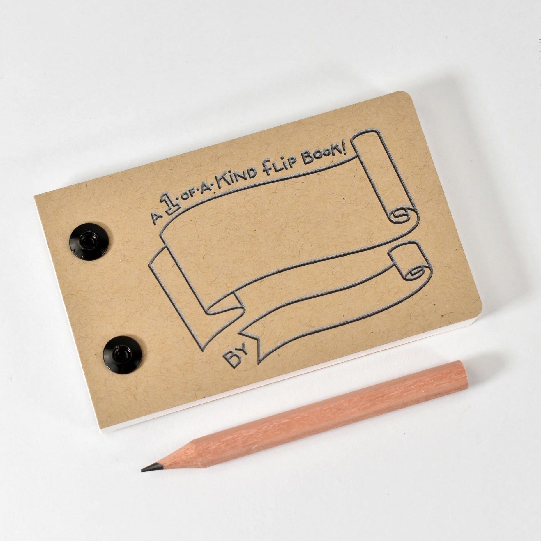 Each book is bound using two black screw posts, so you can take the flip book apart while drawing and put it back together when you're finished. A small pencil is included.