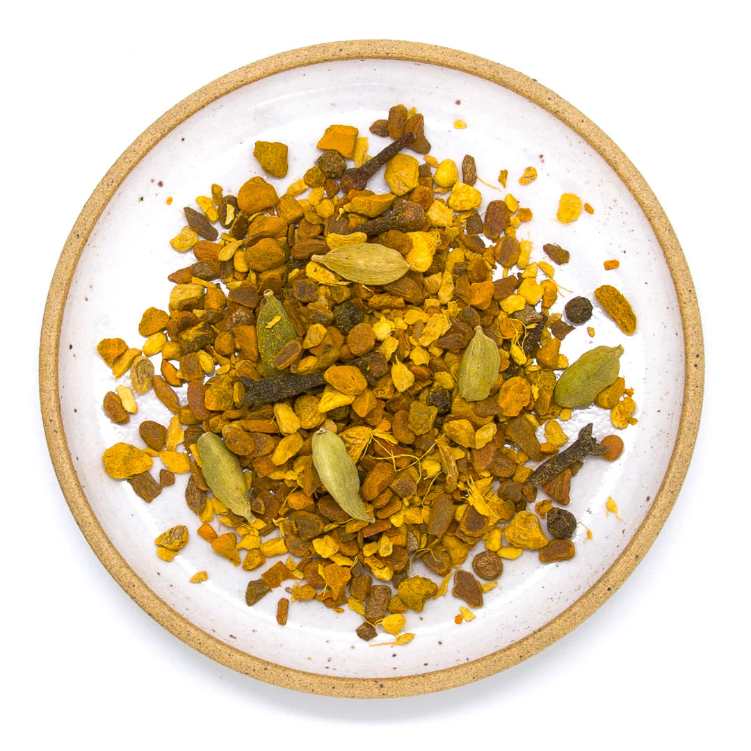 Warming aromatic roots and spices aid in reducing inflammation while promoting healthy digestion.