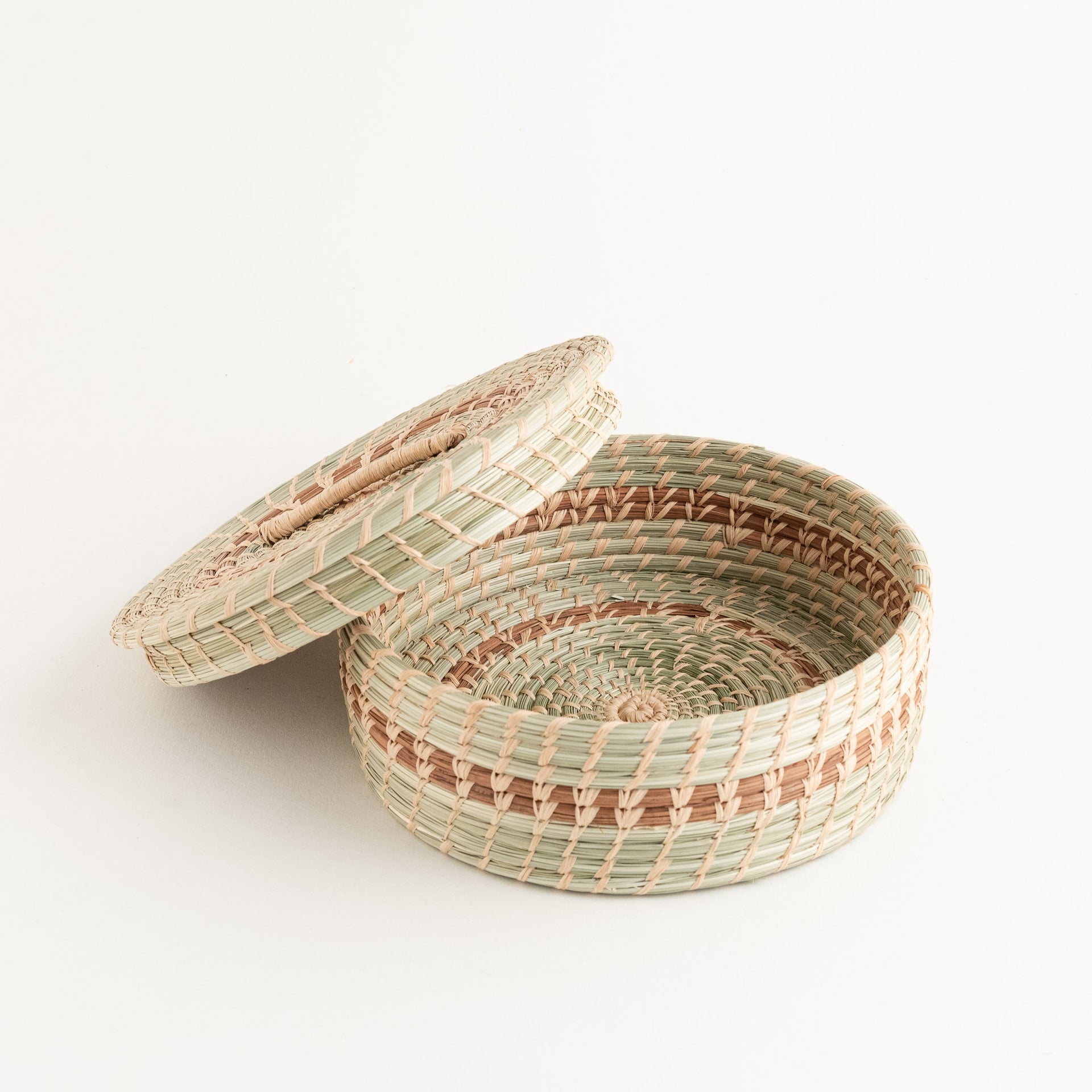 Perfect for serving tortillas and other snacks, but also for organizing your home. Stash sewing supplies, office supplies or secret treasures. The soft green of the native pajón grass will mellow with time into a golden color, accented by longleaf pine needles.
