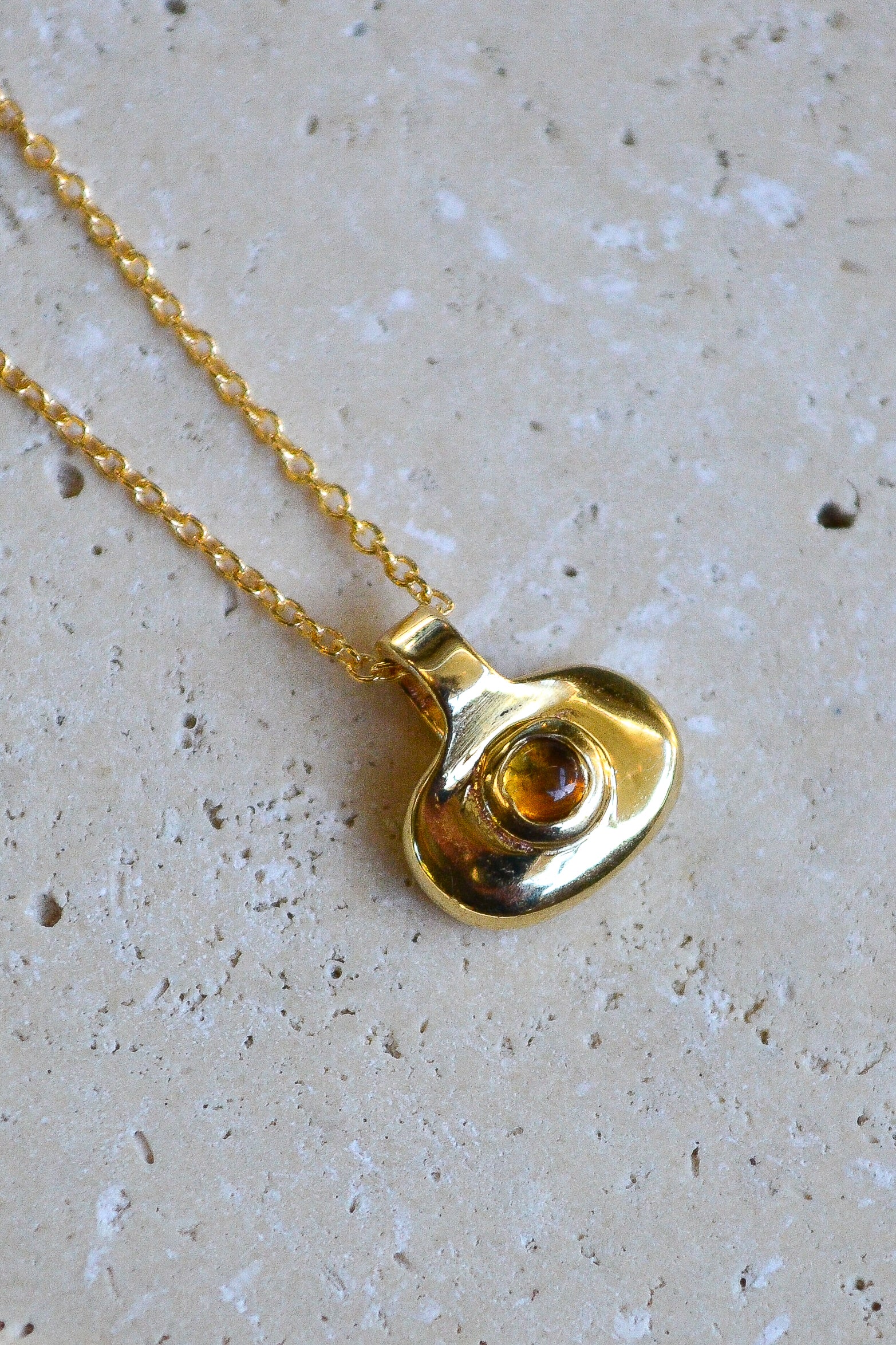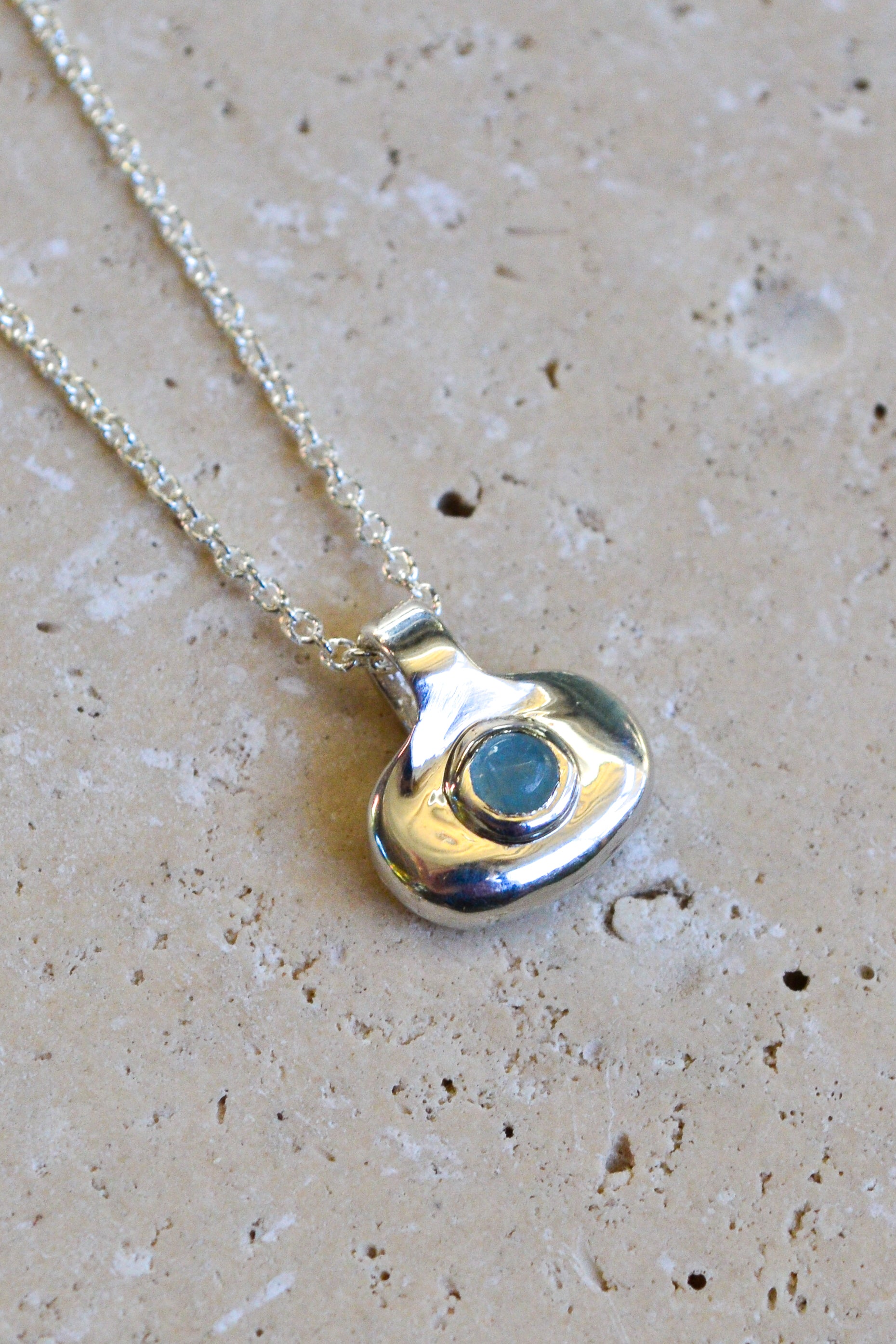 Inspired by the array of colors found on the inner layer of the seashell, a small charm necklace featuring a natural gemstone.