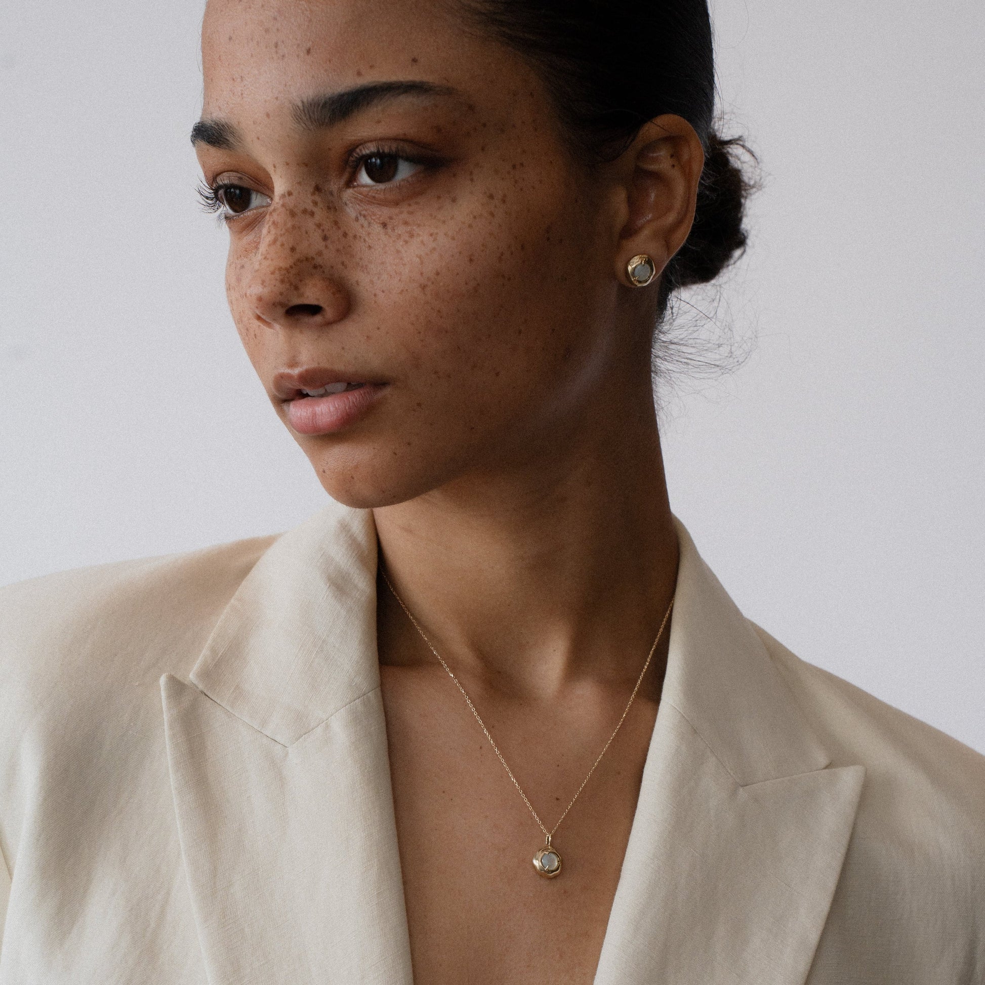 The Keeper Studs are crafted with organically shaped three-prong settings to hold each stone’s essence, offering a constant connection to it’s specific energy.