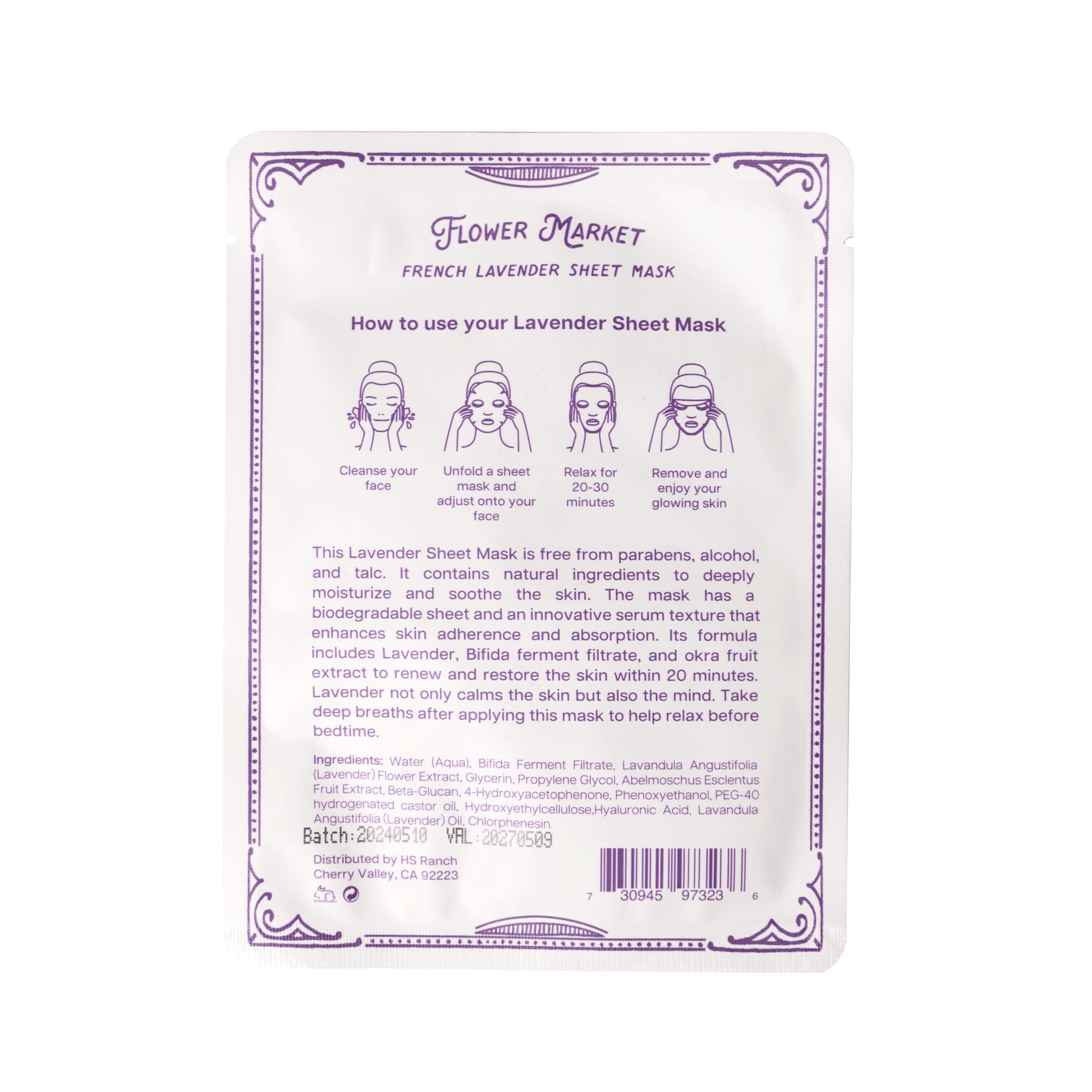 Pamper your skin with the French Lavender Sheet Mask, designed to deeply hydrate, soothe, and restore.. Its innovative serum texture ensures optimal adherence and absorption, delivering a luxurious skincare treatment in just 20 minutes.