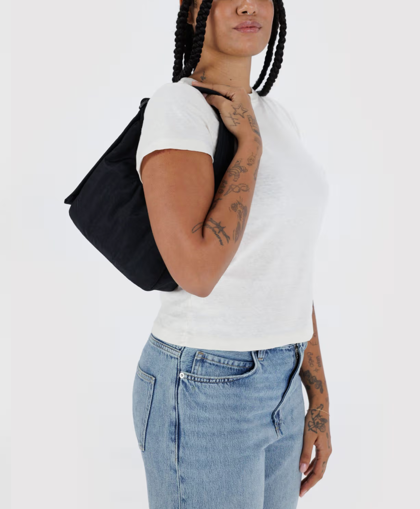 A mini version of Baggu's nylon shoulder bag. Slightly slouchy, slightly structured. Complete with an interior pocket so everything has a place.