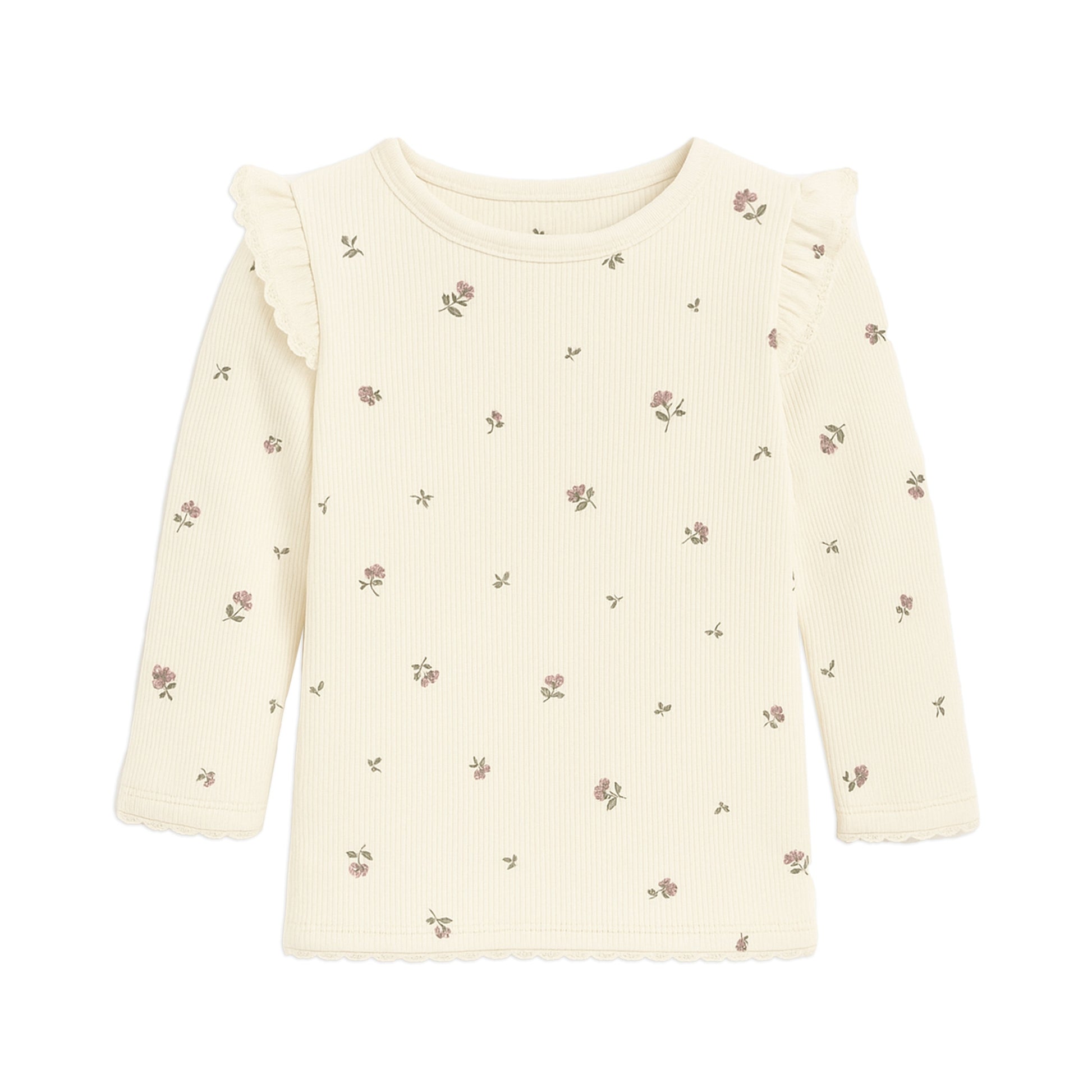 Soft, sweet, and easy to wear, the Rina Ribbed Ruffle Top is a go-to for cozy days and special moments alike. Made from stretchy organic cotton rib, it features delicate ruffled armholes with a picot stitch finish and a classic rib-bound neckline.