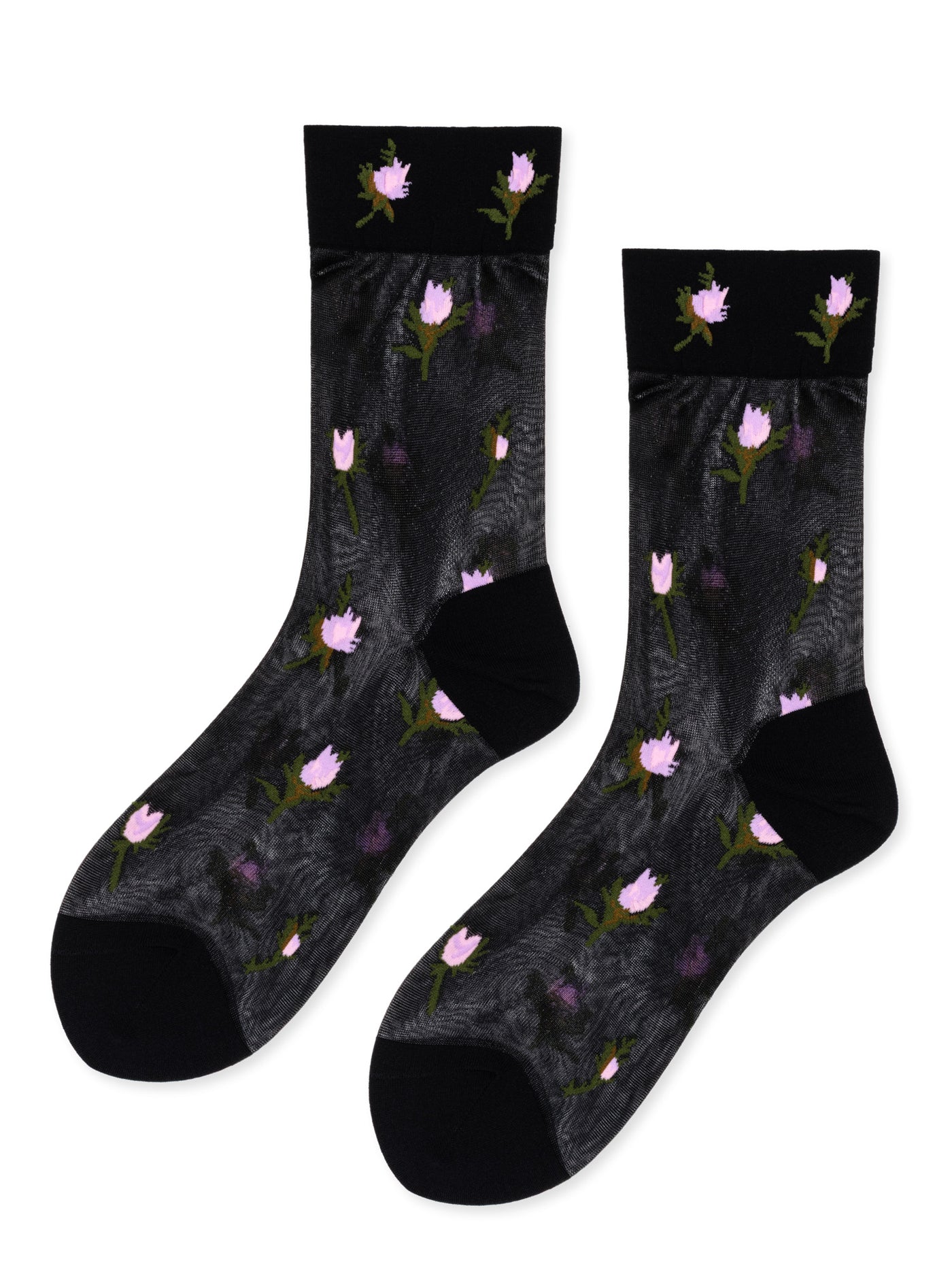 These sweet, innocent sheer socks have a touch of grandma's charm, making them the perfect addition to your wardrobe. Slip them on and let your style bloom (just like these budding roses)!