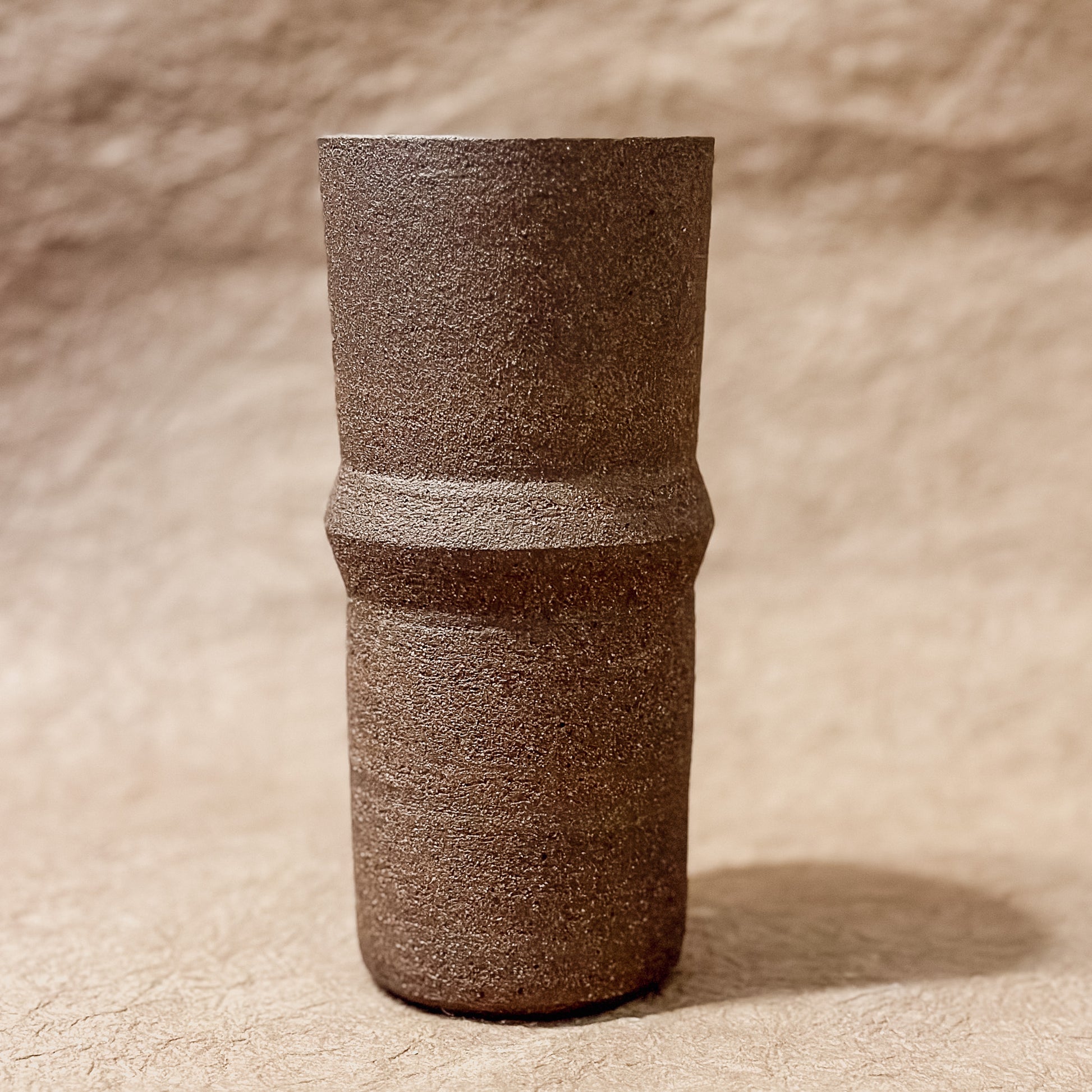 Handmade ceramic vase perfect for little bouquets. The exterior is unglazed and interior glazed in order to hold water. Measures 5" tall with a 3" opening.