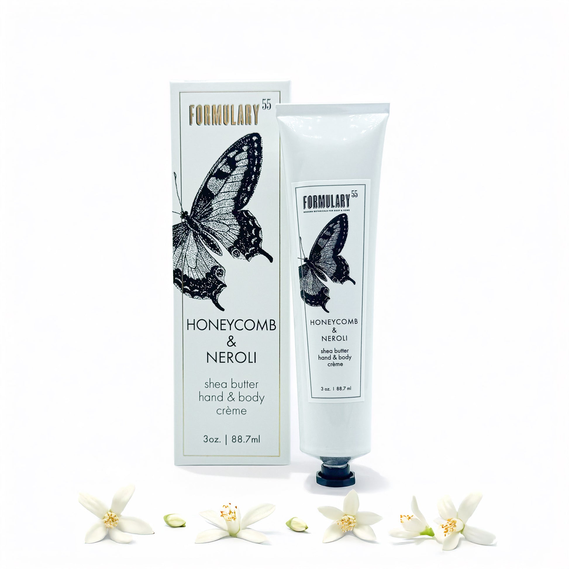 Ingredients: 78% organic content: water, organic aloe juice, shea butter, organic soybean oil, organic sunflower oil, palm stearic acid, vegetable glycerin, vitamin E, organic chamomile, organic calendula, fragrance and essential oils. All of Formulary 55 products are made in the USA, vegan, cruelty-free, SLS-free, and paraben free.