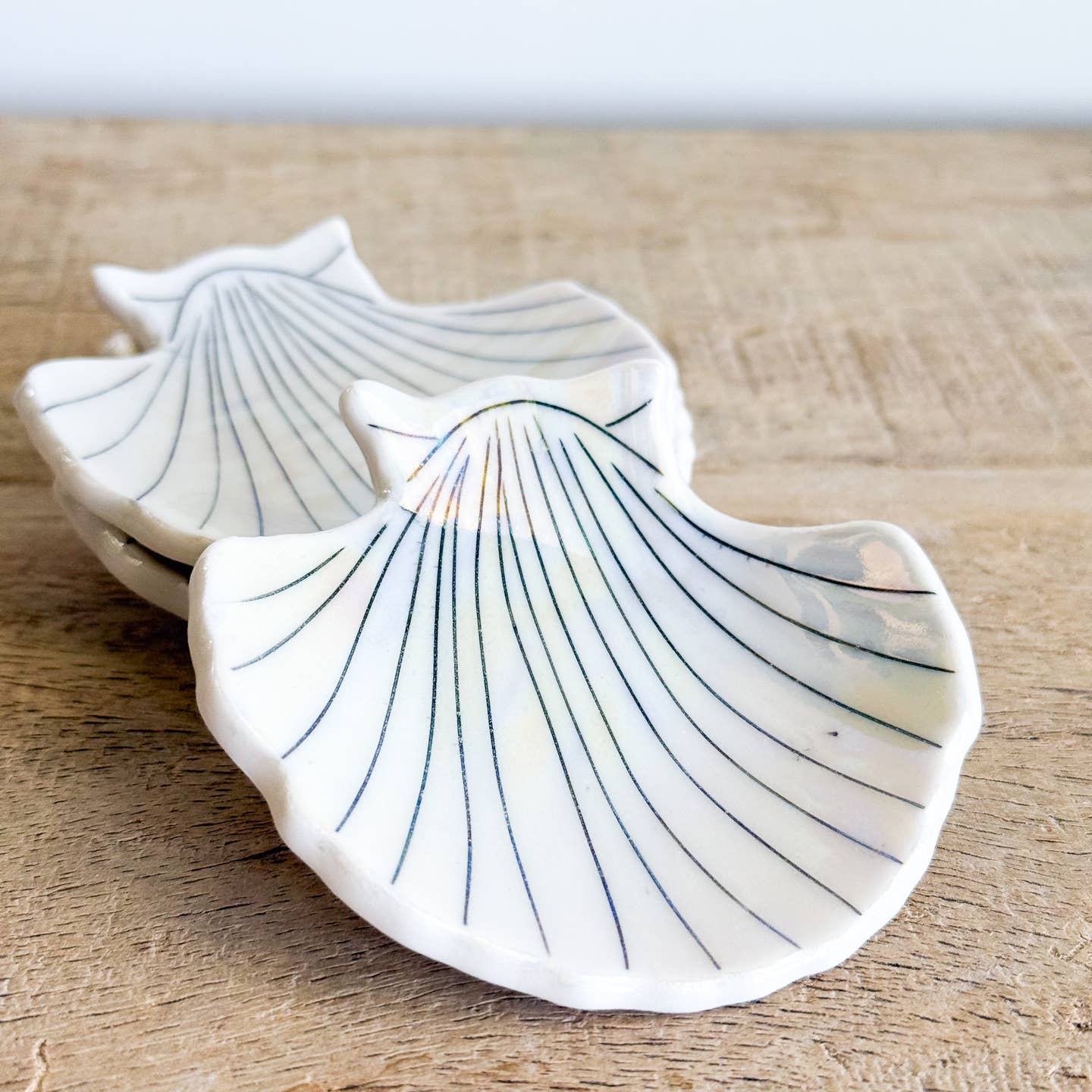 The perfect place to store and display your treasures, from the sea and beyond. Each is hand-made from fine porcelain, and features hand drawn inlay and mother of pearl luster for a delicate and iridescent shine.
