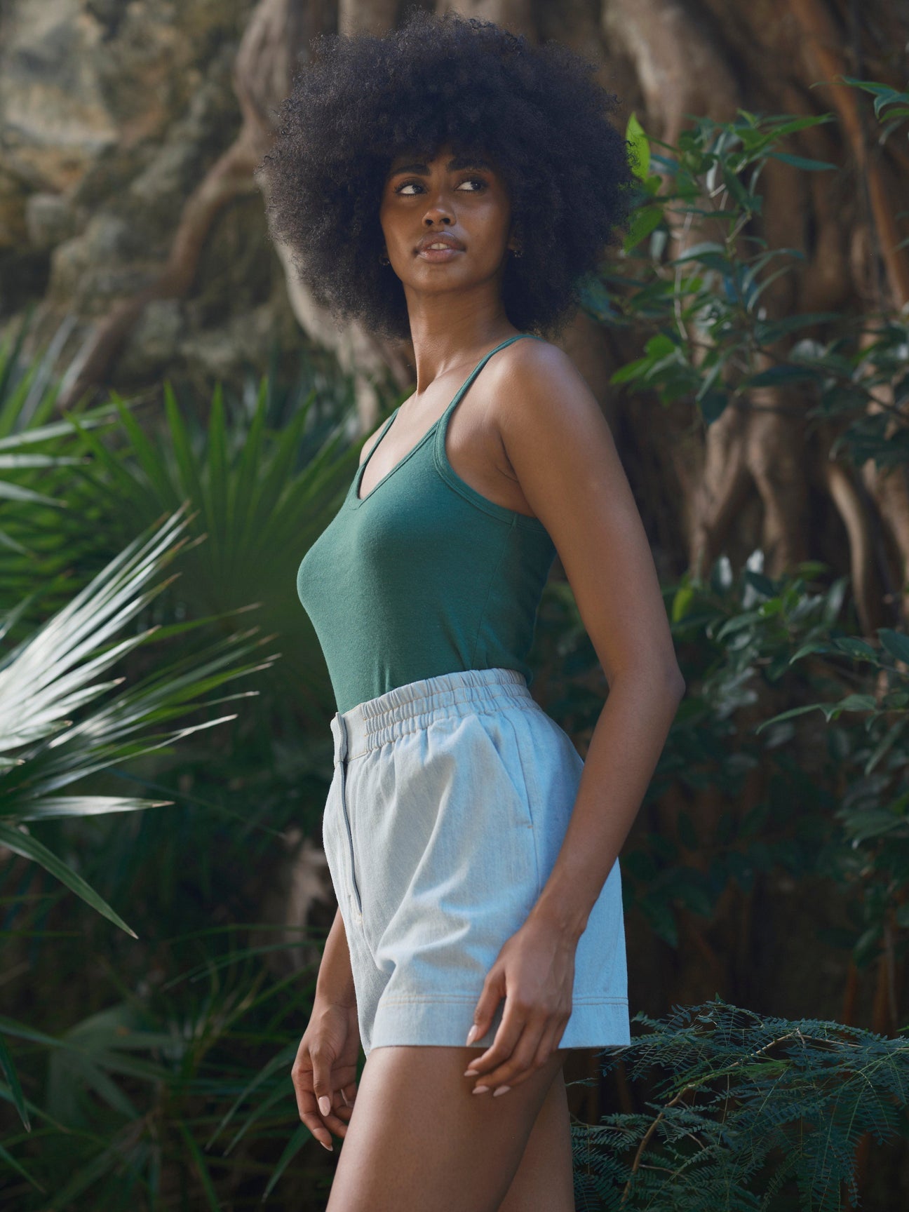 A summer essential. This hemp rib tank has a flattering v-neckline and is long enough to tuck in.