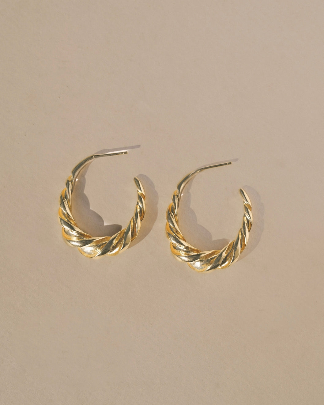Textured twisted light weight hoop earrings. This pair can be worn daily for a sculptural and elegant classic style, with a twist.